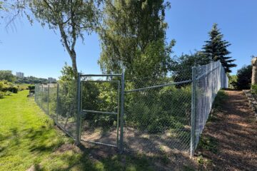 Zum Anfang ein Vorher / Nachher Bild, welches die markante Veränderung festhält, nachdem man einen soliden, strapazierfähigen Zaun montiert hat. Natürlich hat uns der Zufall in die Hände gespielt, dass bei der Fertigstellung unserer Arbeit, schönstes Wetter war.