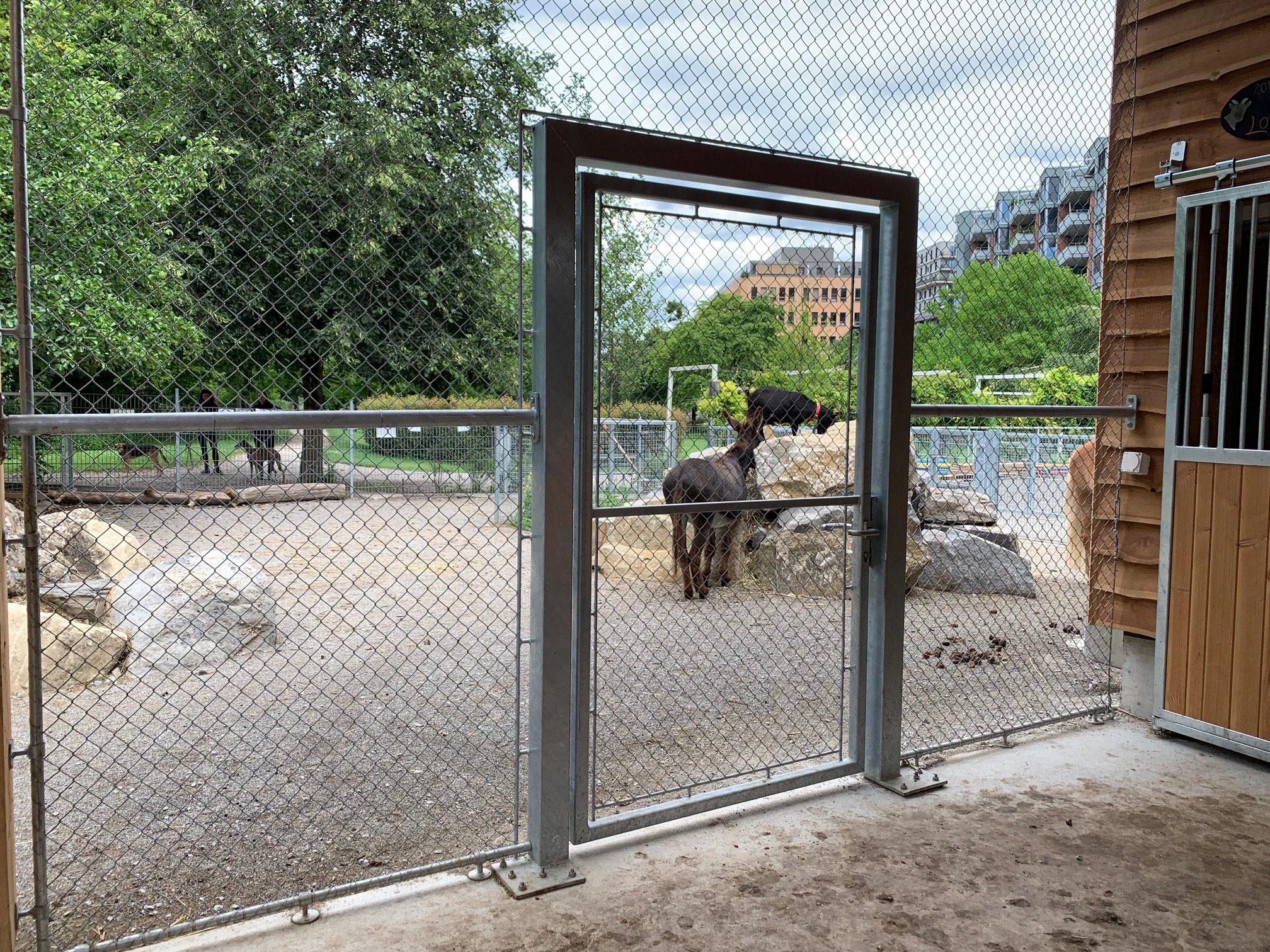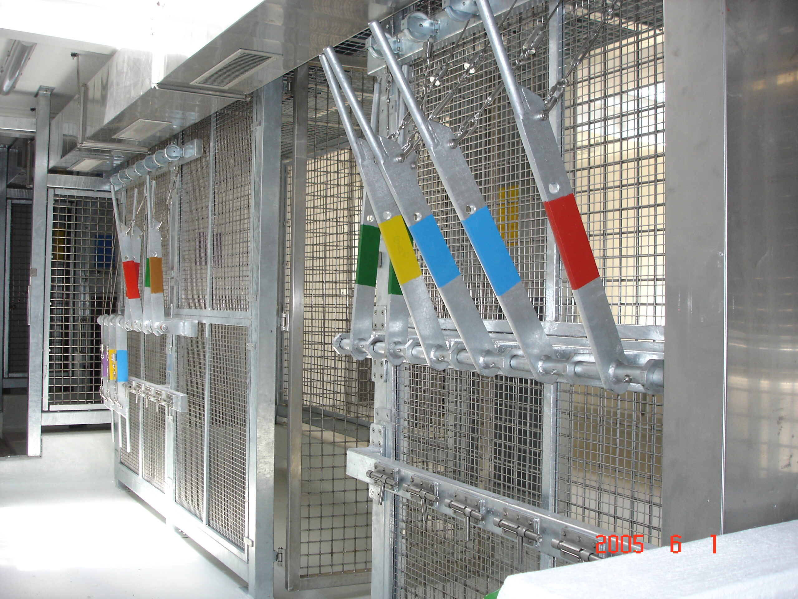 Die Gehege können in jeder beliebigen Grösse und Form in unserer Werkstatt angefertigt werden. Der Innenraum kann individuell abgetrennt werden. Schieber, welche mit Seilzug von aussen bedient werden, ermöglichen es den Tieren zwischen den verschiedenen Gehegen zu wechseln.